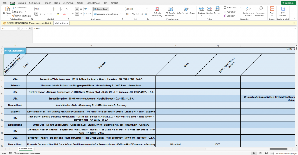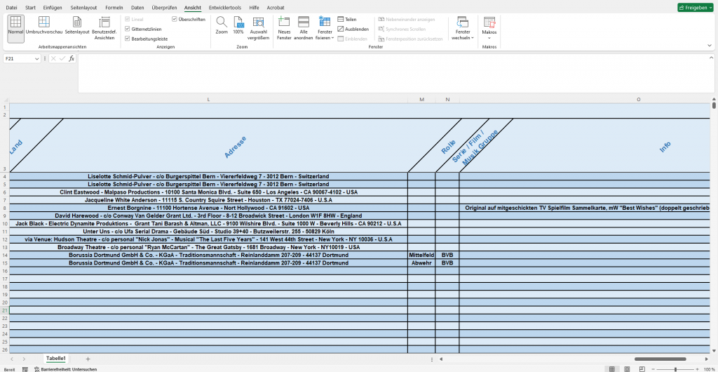 In dieser Liste könnt ihr alle Informationen frei eintragen, z. B. Name, wann ihr etwas erhalten habt, Adresse, Zusatzinfos usw.