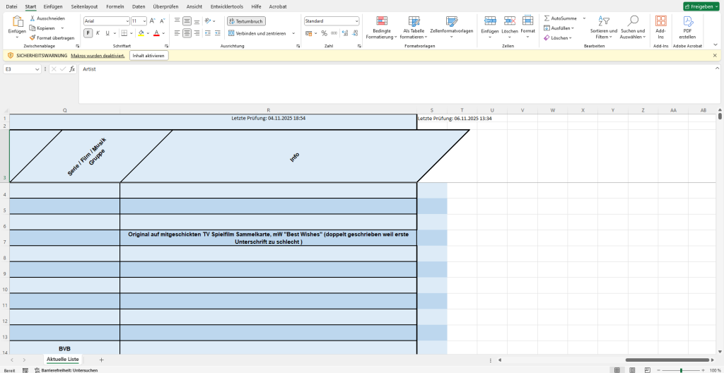 Ich habe euch einige Beispiel-Einträge aus meiner eigenen Liste eingefügt, damit ihr seht, wie das Ergebnis später aussieht und welche Werte automatisch entstehen.